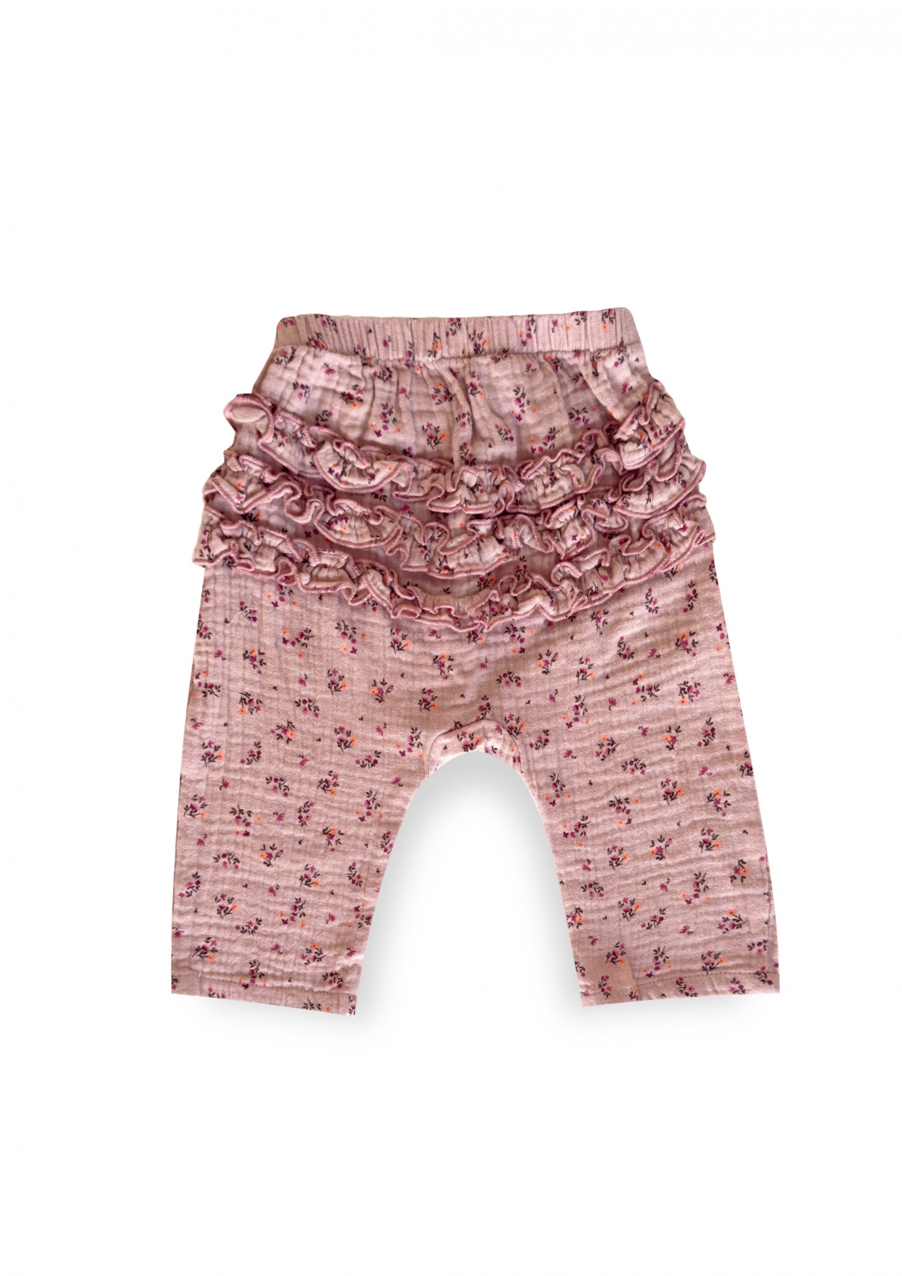 Muslin pants with ruffles on the back pink floral print