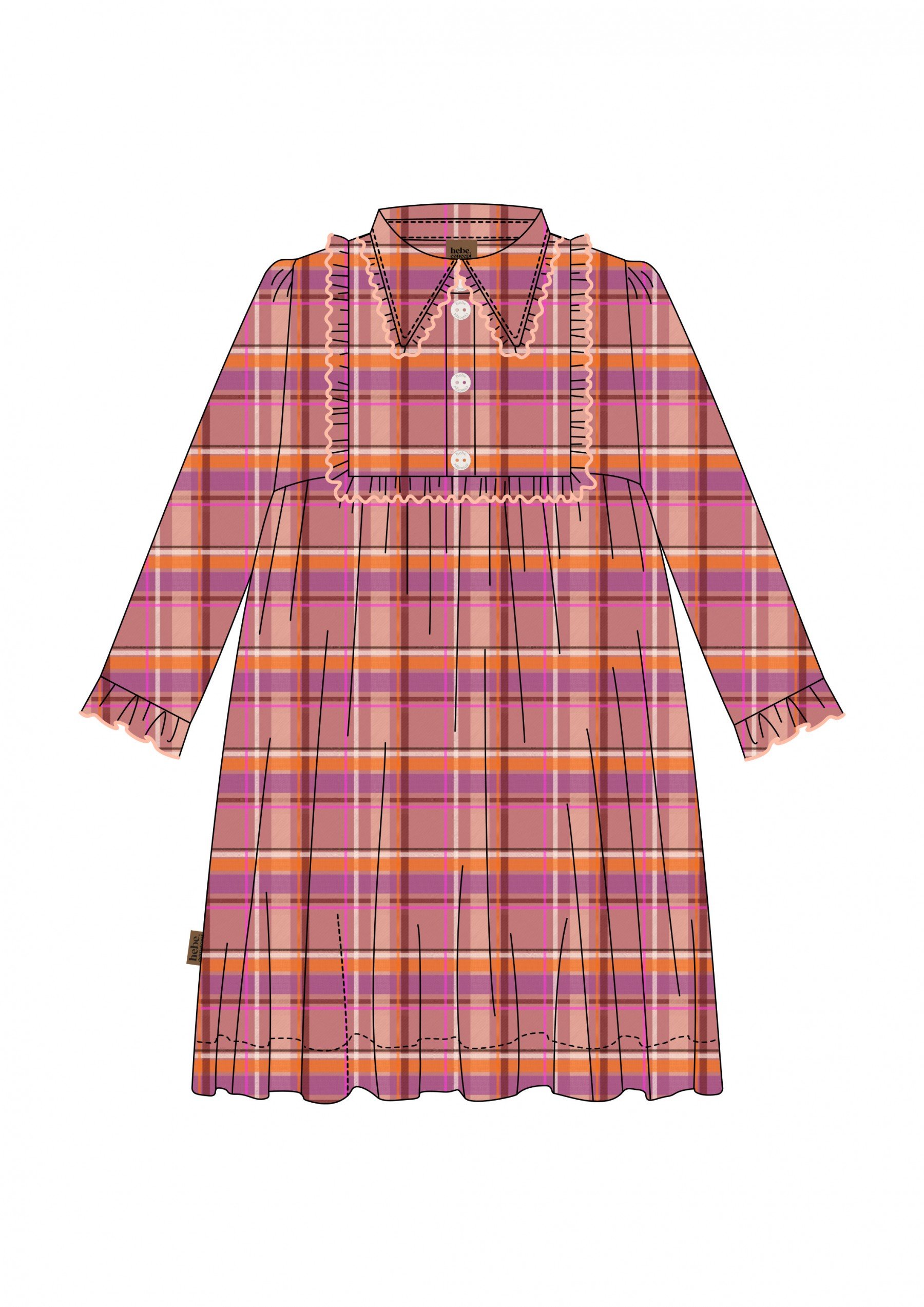 Blouse flannel with a collar and ruffles pink/peach checkers