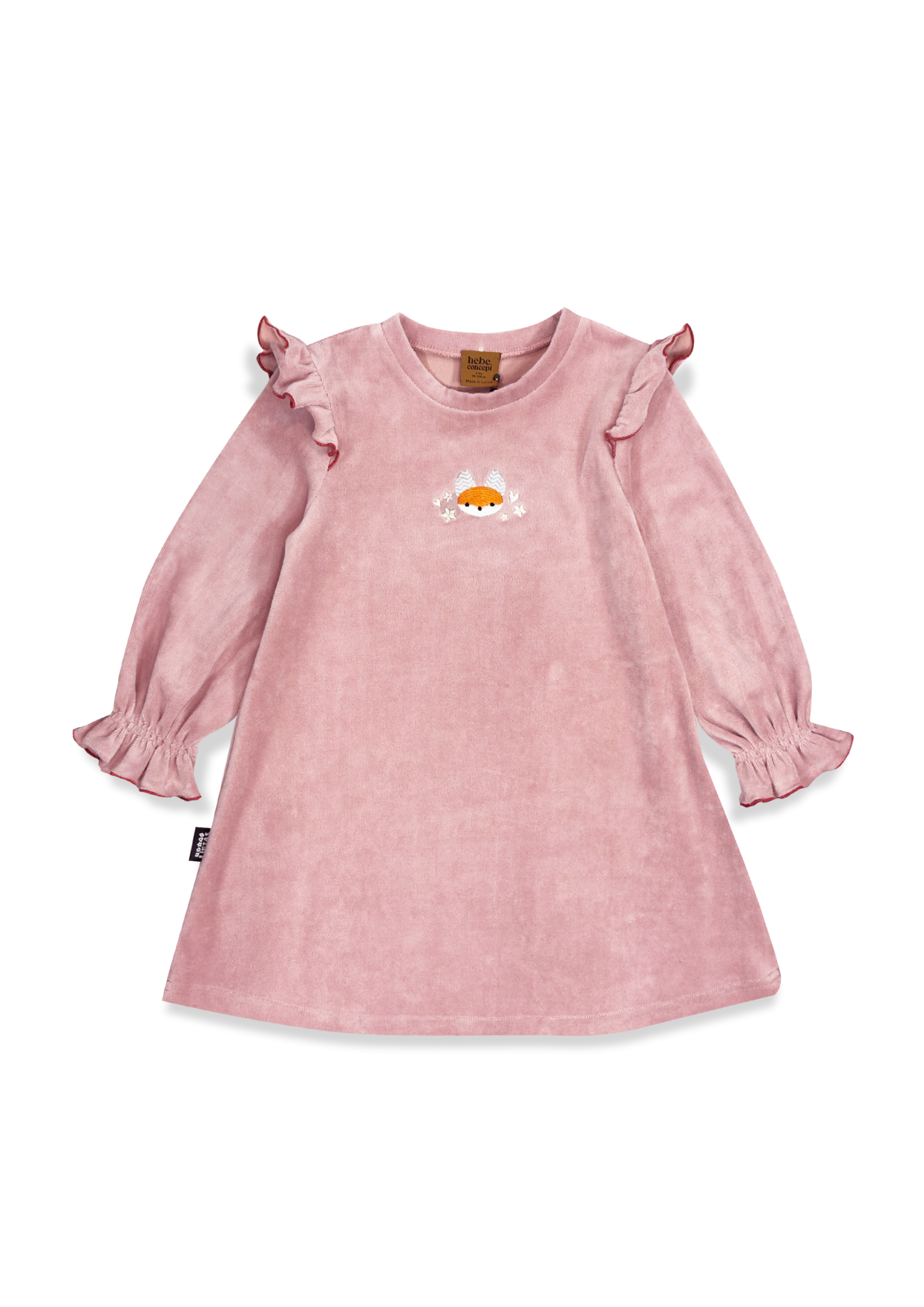 Pink velvet dress with wings and embroidered Tuta's fox