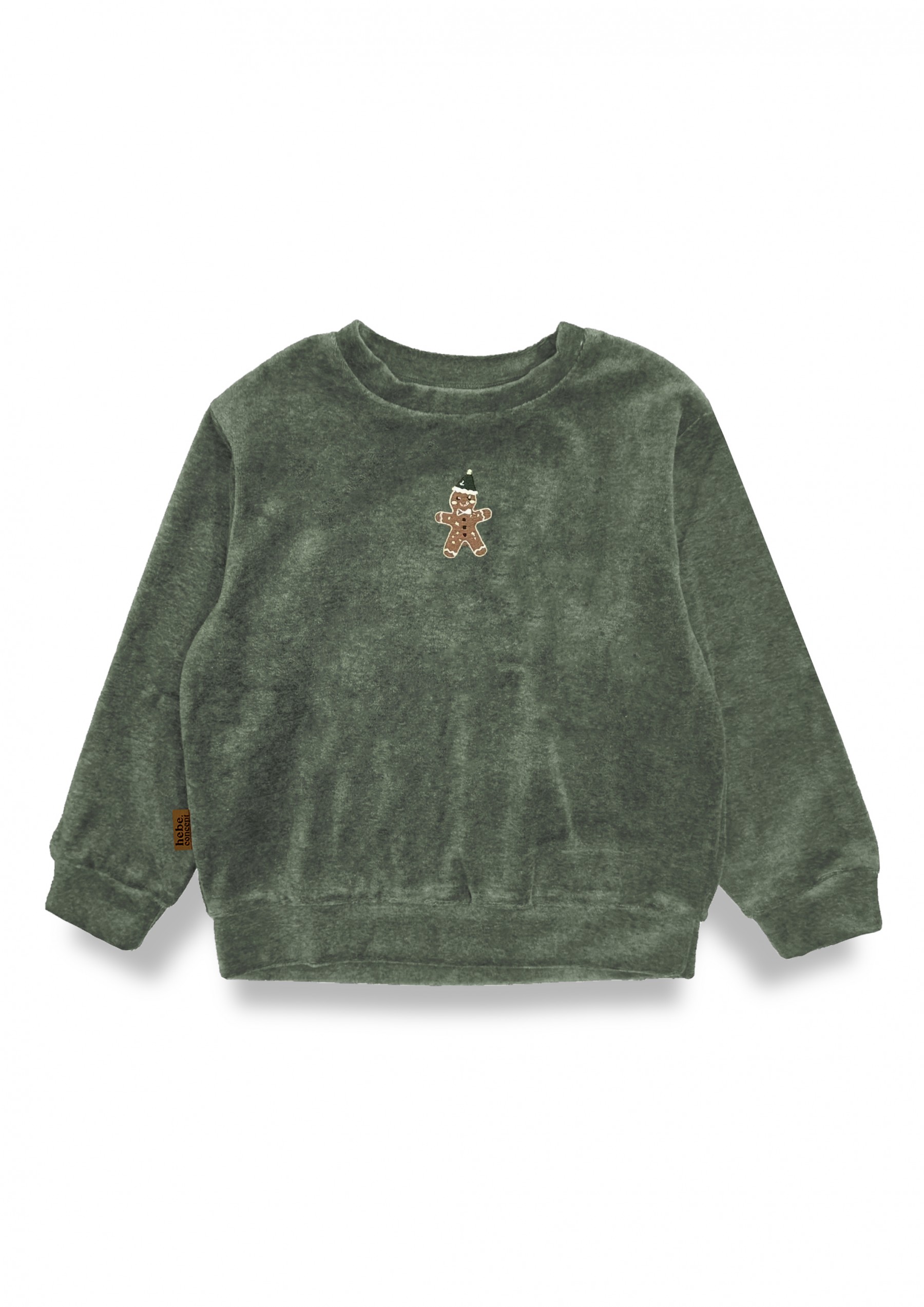 Džemperis zaļš samta ar Piparkūku vīriņa izšuvumu