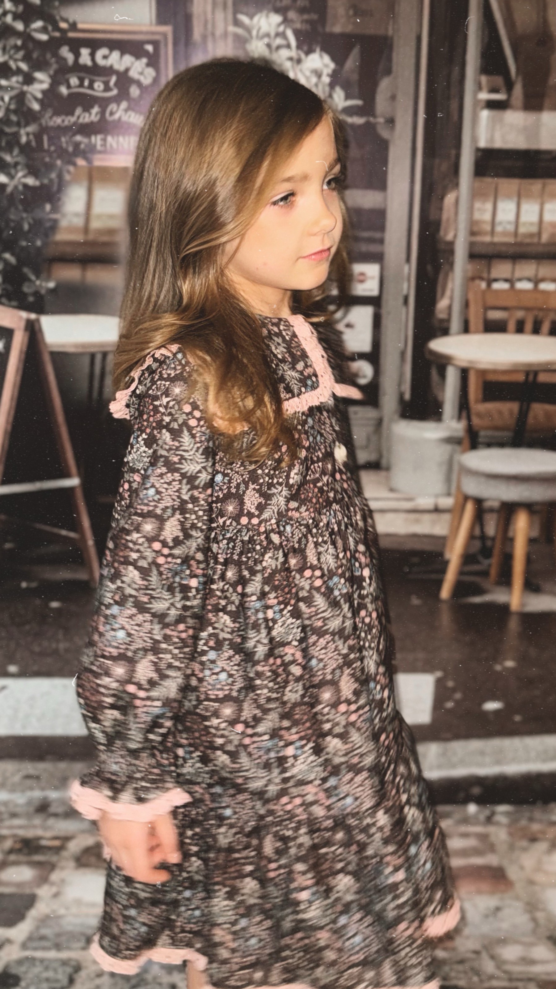Lacīte rozā muslina ar ziedu apdrukas un rišuRegulārā cena: €19,00