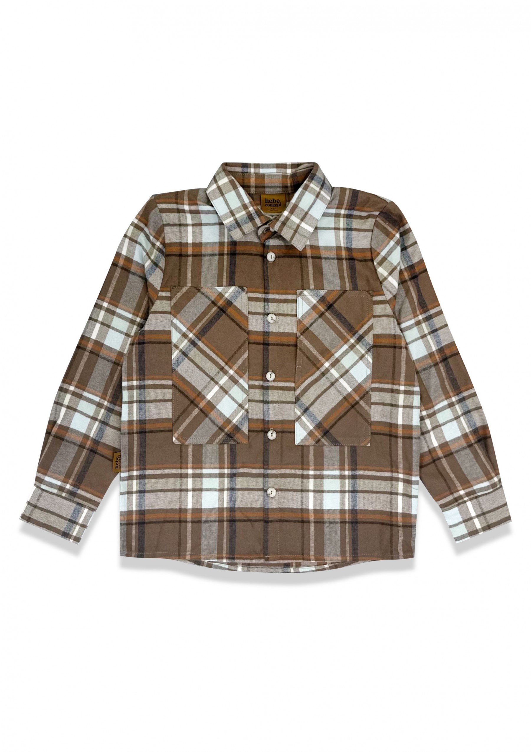 Krekls brūni/zili rūtains flaneļa ar kabatām