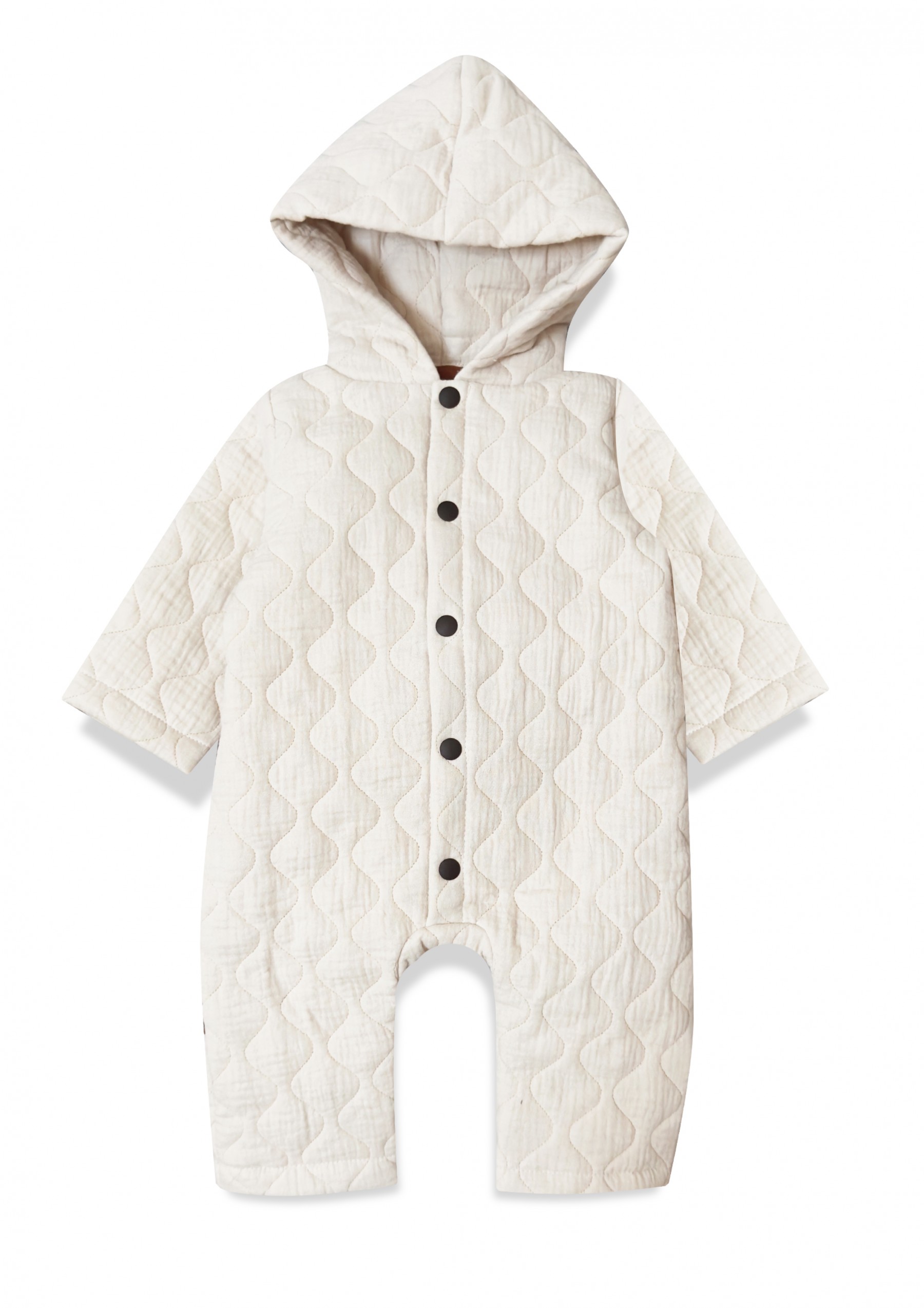 Rāpulis krēmkrāsas stepēts ar kapuci un pogām