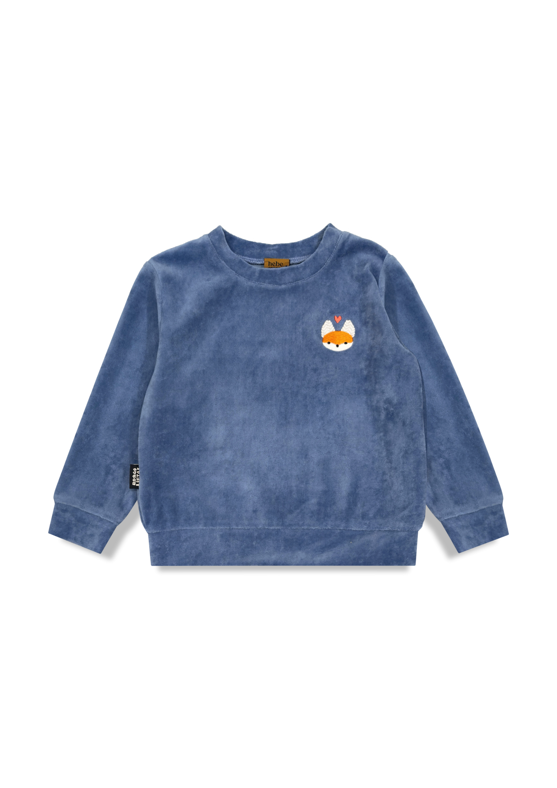 Zils samta džemperis ar izšūtu Tutas lapsiņu