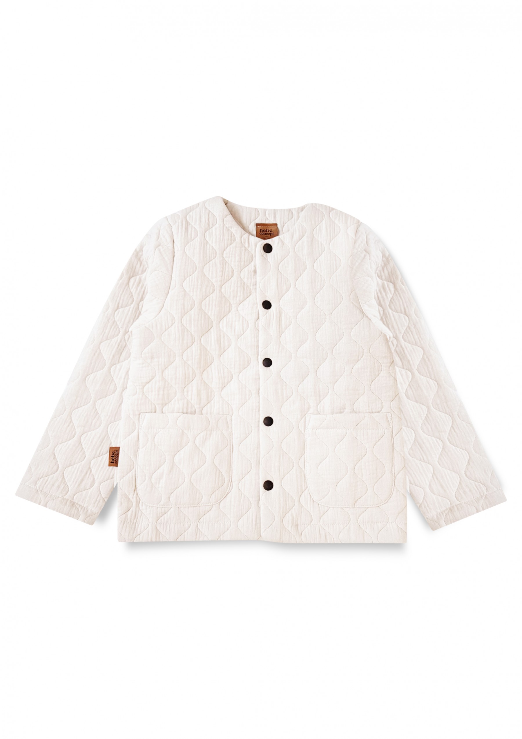 Fall/Winter’25 collection "BONJOUR" quiltedjacket with pockets and buttons, made from sustainable materials.
