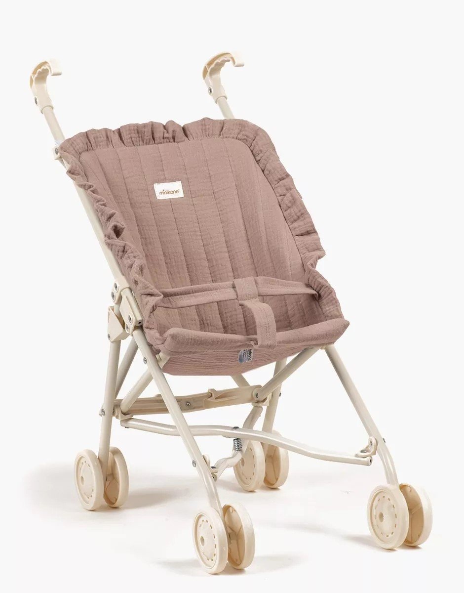 Minikane kokvilnas ratiņi lellei, dūmakaini rozā